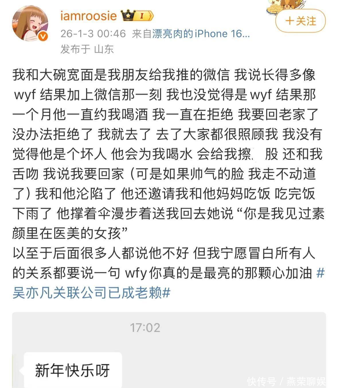 今天早上一睁眼,全网都在传一个叫iamroosie的博主发了一堆猛料。她说自己谈过的男朋友全是内娱顶流,还晒出聊天记录、酒店定位,甚至还有和男星躺一张床的照片。最离谱的是,她直接点名鹿晗、范丞丞、黄明昊、王安宇这些人,说有亲密关系。网友们立马炸了,热搜直接被屠榜。这人用的账号叫iamroosie,后来被扒出来可能就是之前李汶翰的前女友司晓迪。早些时候她就说过自己只谈恋爱对象必须是男明星。这次一下子把那么多人拉下水,动作挺狠。她说和林更新恋爱期间对方出轨闺蜜,还喊话让他道歉。另外一张枕头照,说是和某顶流睡一起,连穿的衣服都能对上2023年看演唱会那天的穿搭。